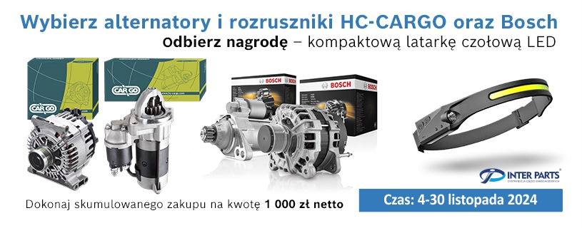 Dokonaj skumulowanego zakupu alternatorów i rozruszników marek HC-CARGO oraz BOSCH o wartości 1 000 zł netto i odbierz latarkę czołową LED za symboliczną kwotę 1 zł netto!