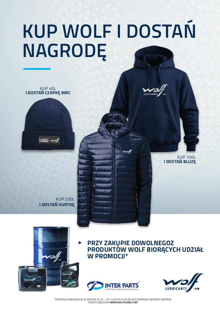 Od 20 października do 20 listopada 2025 r. (lub do wyczerpania zapasów nagród) kup dowolne produkty Wolf biorące udział w akcji i odbierz stylowe nagrody!