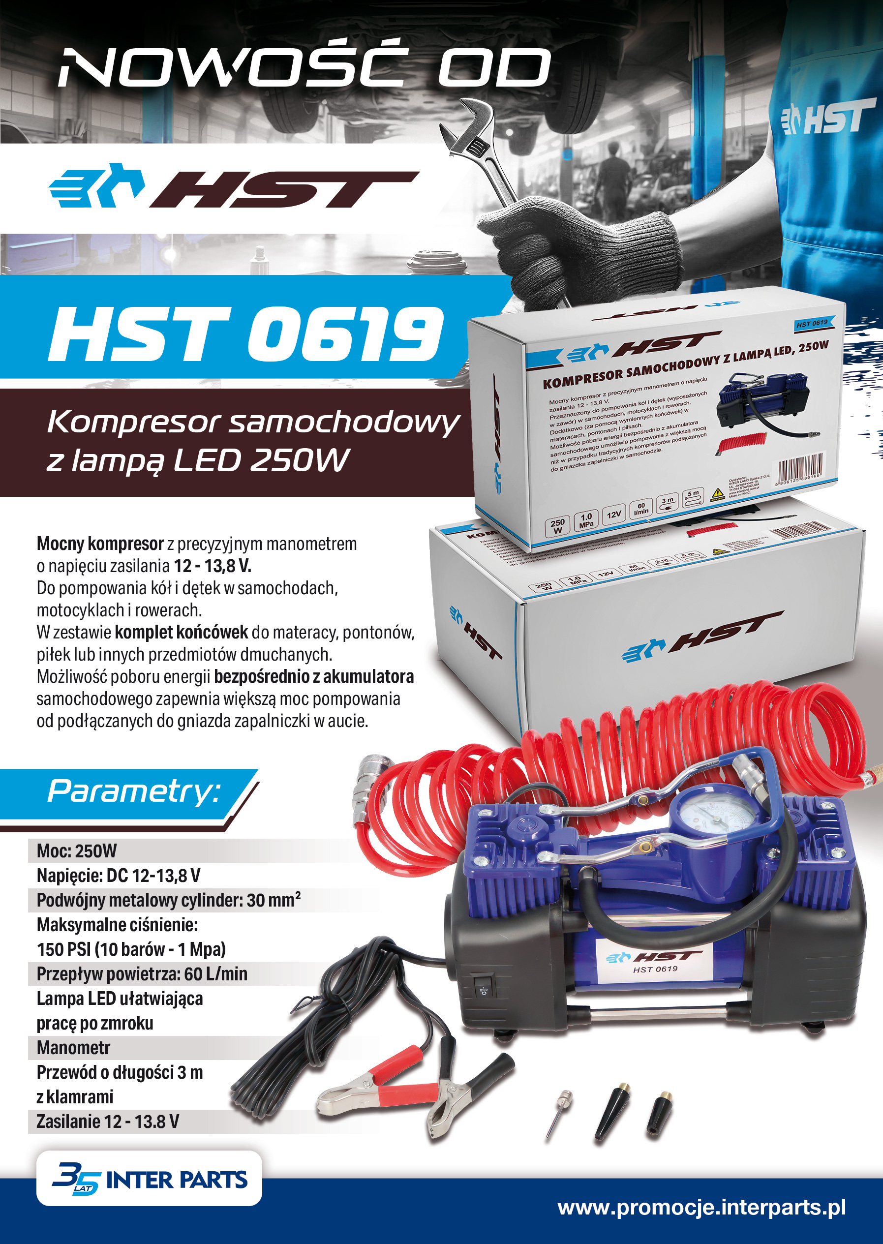 W naszej ofercie pojawiła się kolejna nowość marki HST – kompresor  ​samochodowy HST 0619 z lampą LED 250W.