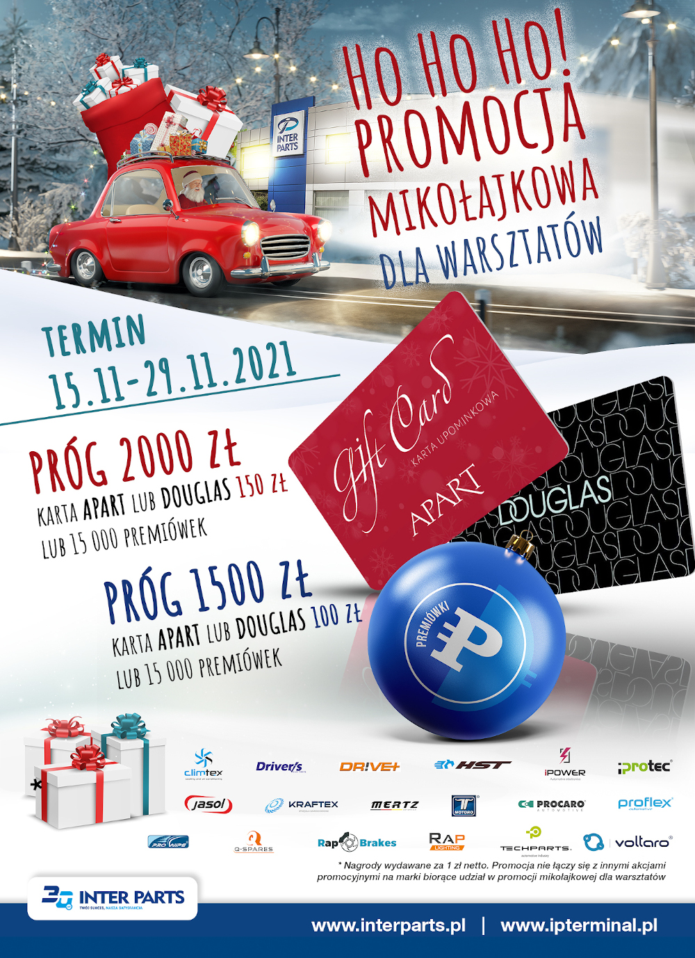 Weź udział w promocji Mikołajkowej Inter Parts dla warsztatów i wygraj bony do drogerii DOUGLAS lub APART lub zamień na premiówki.